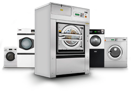 Una amplia y diversa línea de maquinaria industrial preparada para adaptarse a la medida de sus necesidades, maquinas lavadoras y secadoras robustas, completamente equipadas y de alto potencial dirigidas al sector profesional.